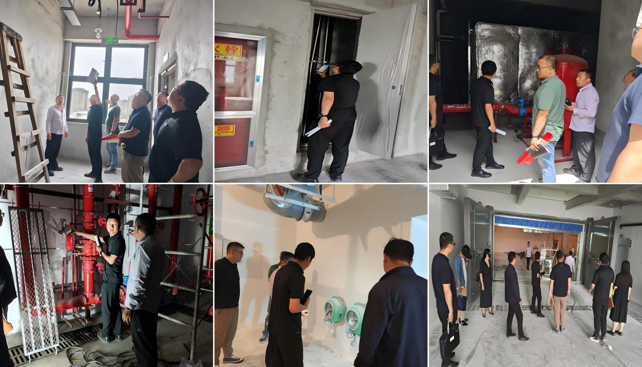 现场,检查了烟草物流建设项目人防工程及消防工程专项验收前的完成情况,其中消防工程重点对防火门、孔洞封堵、高位水箱间、消防水泵房、高低压配电室消防联动测试等进行了检查,发现部分防火门缺少标识标准、部分区域孔洞封堵不完善、高位水箱间及消防水泵房消防电话未接、高低压配电室气体灭火系统尚未施工完成等问题;人防工程主要检查了相关设施设备、人防门、风机等,发现人防腰线尚未施工完成、部分人防门缺少插销等问题。检查组就现场发现存在的短板和问题,给施工单位进行了逐项反馈,明确时间节点,提出整改要求,确保施工质量符合标准规范。